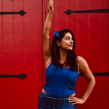 Ramya began belly dancing in 2013 and immediately fell in love with it. Since then, she danced regularly with Sahara Dance studio in DC, participating in performance classes whenever possible. After moving to Philly in 2022, she continued her dance education through Habiba Studio in Center City. Growing up, she learned a bit of Bollywood dance and hip hop and now especially loves fusion belly dances that incorporates other dance styles.